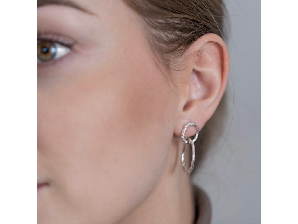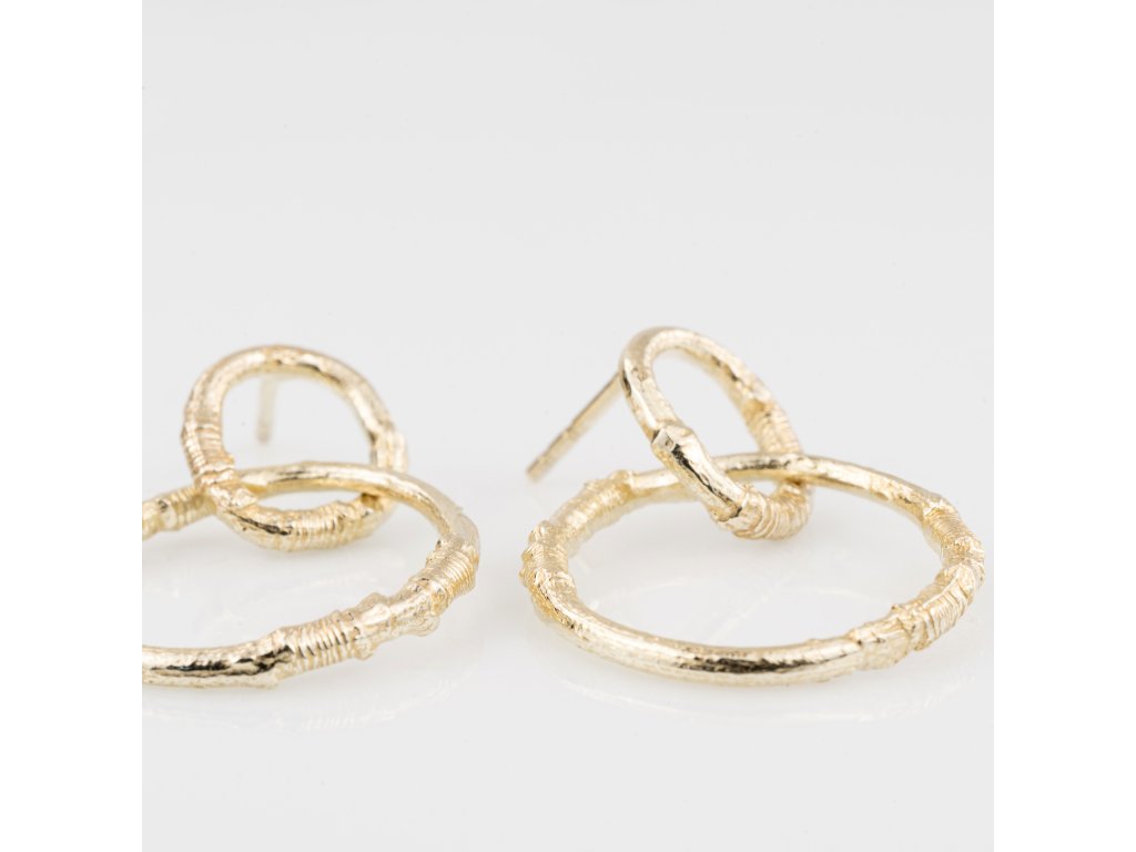 Náušnice Bono jsou dva propojené kroužky vyrobené z dubové větvičky. Dotek přírody, který se hodí ke každému outfitu.