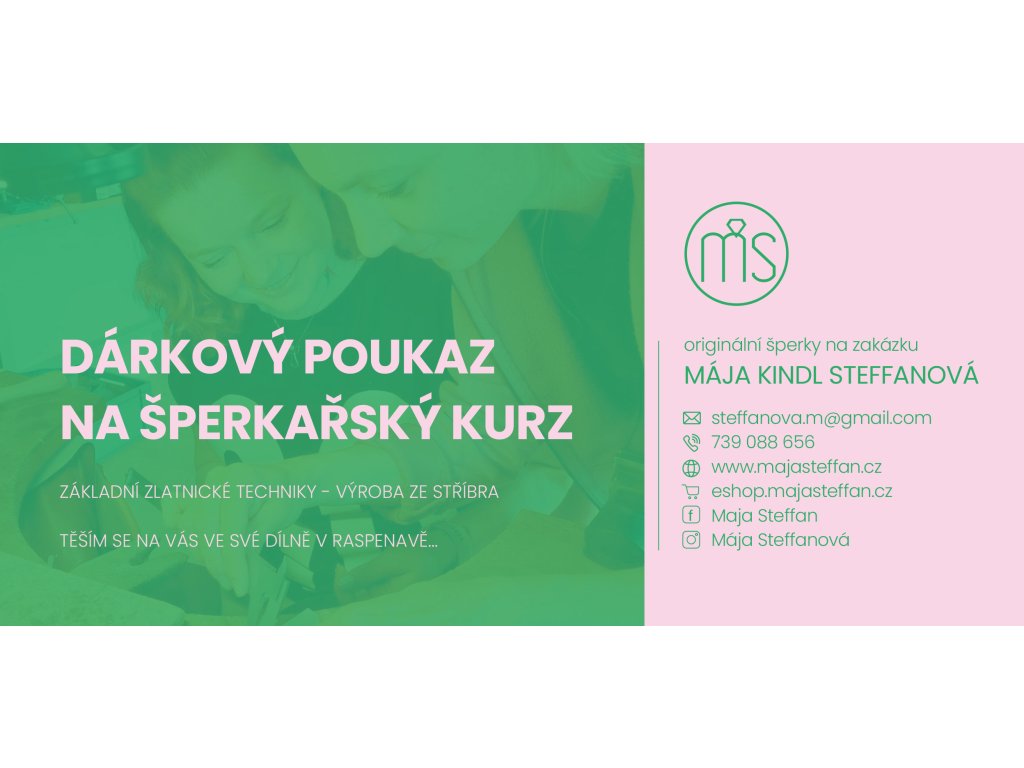 Výsledkem workshopu je šperk (vzhled a typ domluvíme na workshopu) o hmotnosti kolem 2–5g .