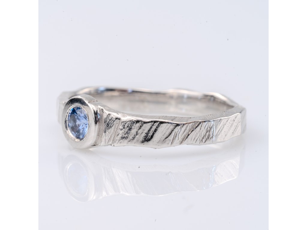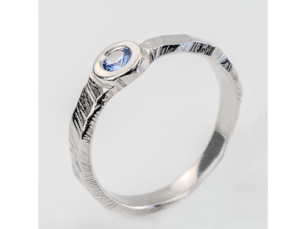 Gaya - síla přírody ve šperku. Prsten Gaya Laguna v sobě nese divokost Země a vody. Strukturovaný povrch odráží nerovnosti života - krásné ve své přirozenosti. Modrý zirkon uprostřed je jako studánka v lese - hluboký, tajemný a živý.