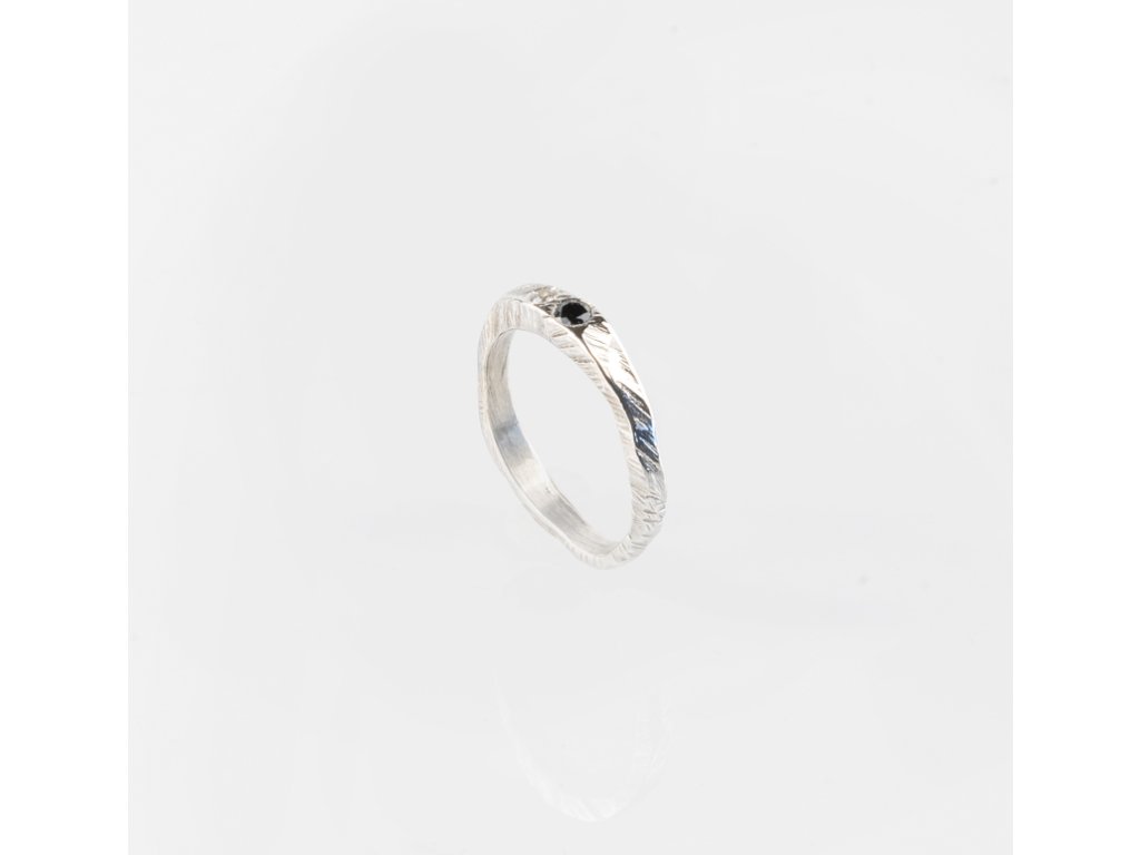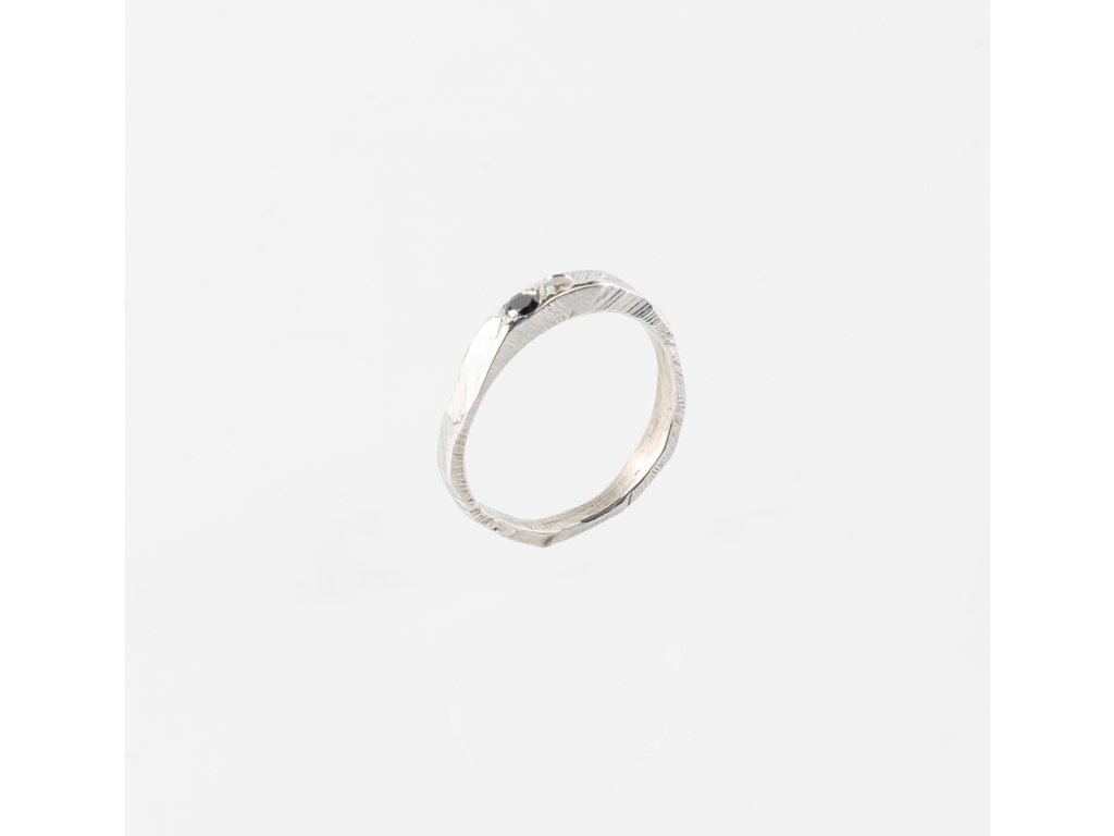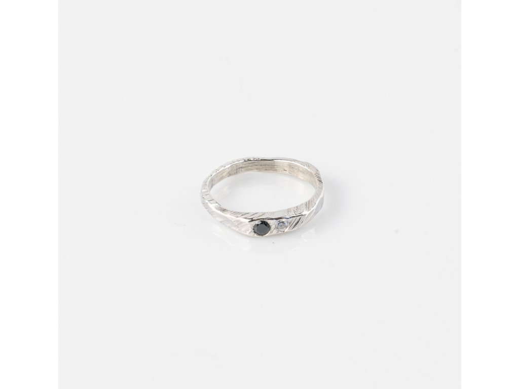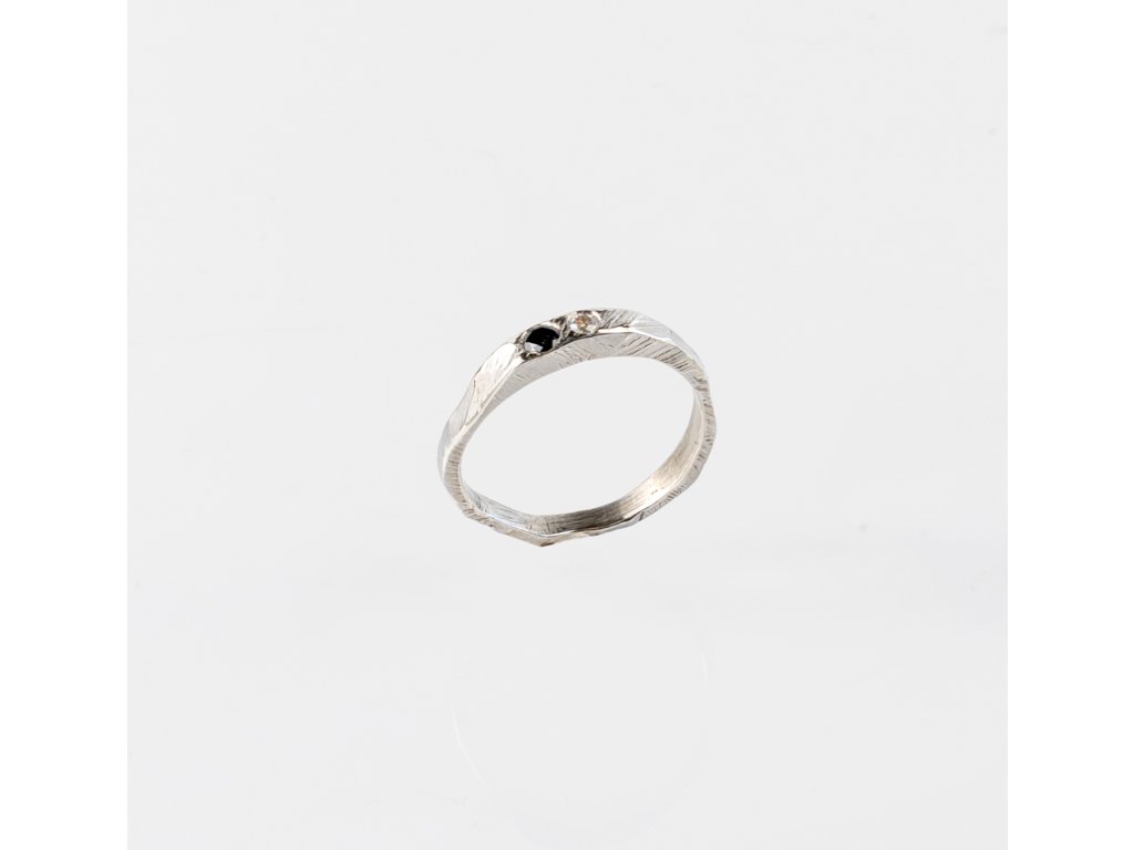 Náladový černobílý prsten se strukturou a zirkony. Na přání lze vyrobit variantu ve zlatě s černým a bílým diamantem.