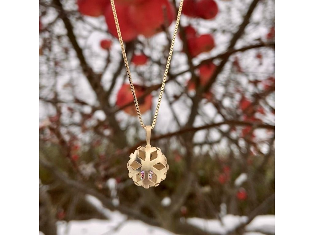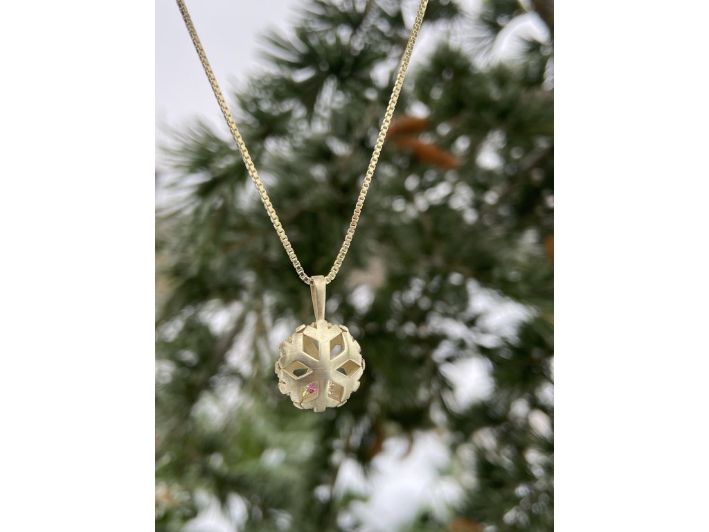 Náhrdelník s vločkou je vyrobený ze stříbra 925/1000 a pozlacený. Uvnitř vločky je vložený velký zirkon, který dodá vločce ledový třpyt a hravost. Tento náhrdelník musí mít každá žena, co miluje sněhové vločky, zimní sporty nebo lenošení u krbu.