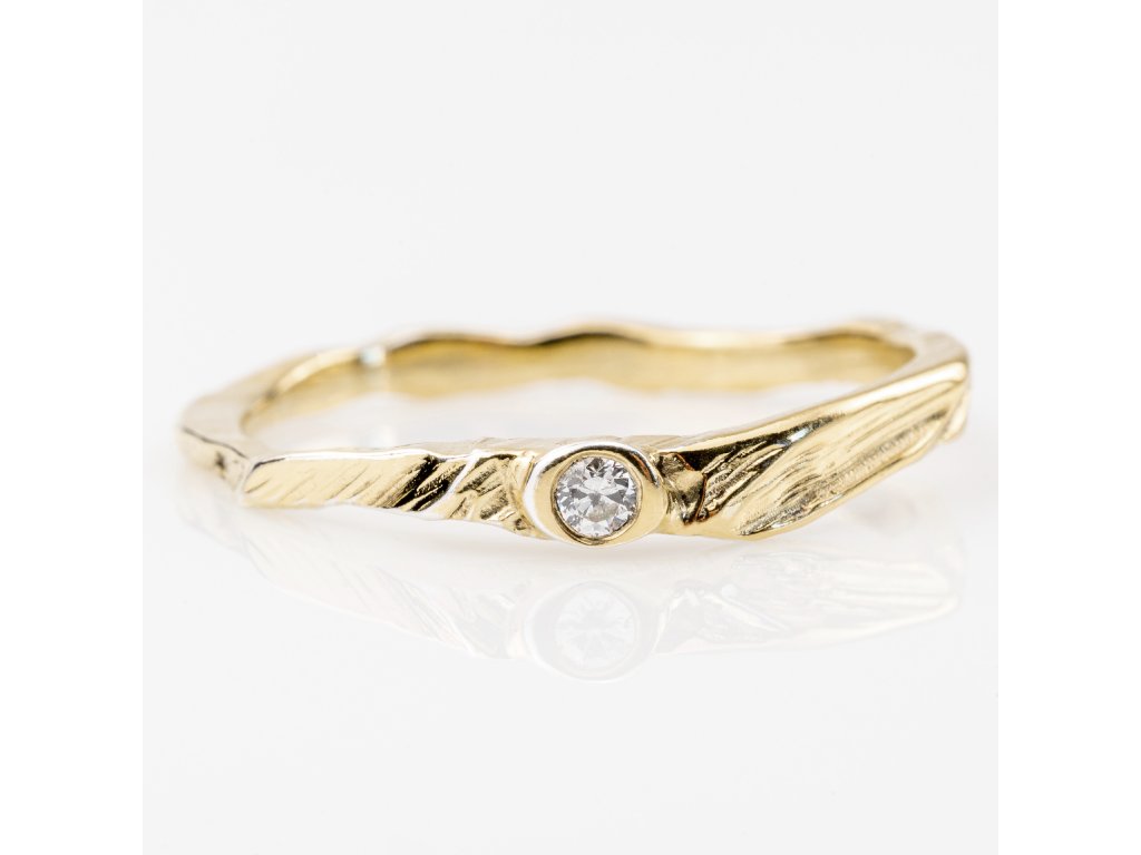 Máme variantu bílé nebo žluté zlato. Zlato 585/1000 a diamant. Na objednání může být i z růžového zlata. Doba dodání 4-6 týdnů. Vzhledem k tomu, že všechny prsteny vyrábím ručně, může se prsten malinko odlišovat, což zaručí to, že každý prsten je originál.