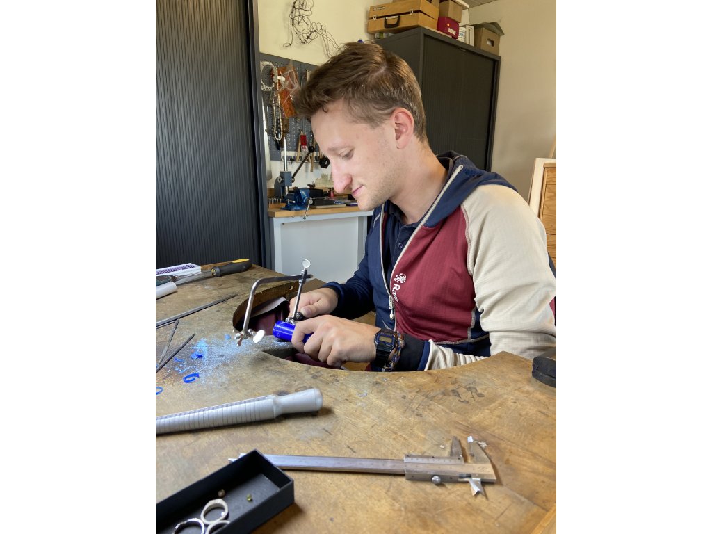 Předání po následném puncování puncovním úřadem a zasazení kamene (kámen zasazuje odborně rytec)